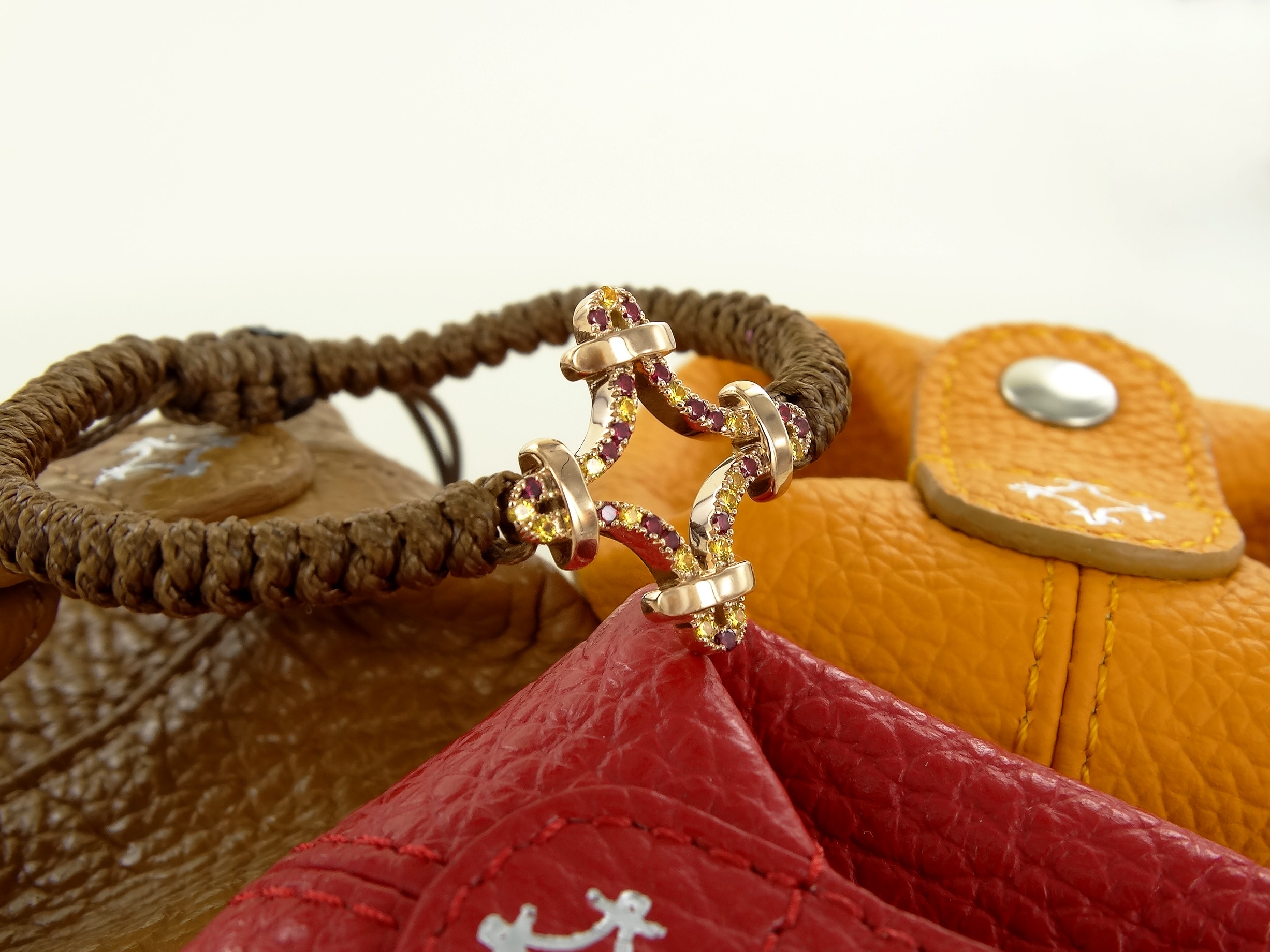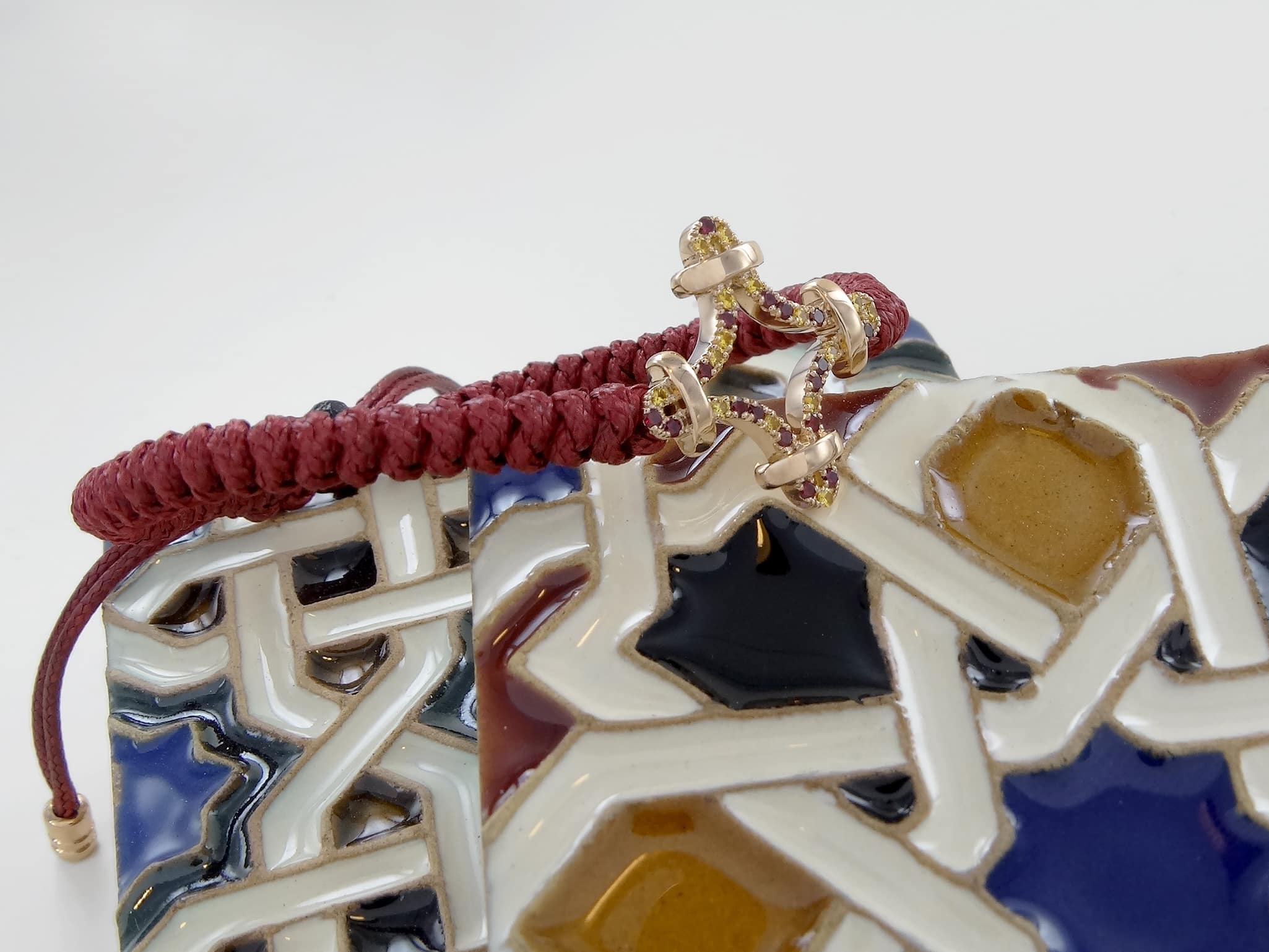Crafted in 5N gold, this special edition is set with rubies and yellow sapphires.