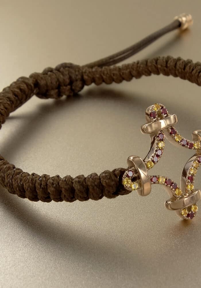 It is mounted on a braided marine-blue cord bracelet, handmade in our Carouge workshops.