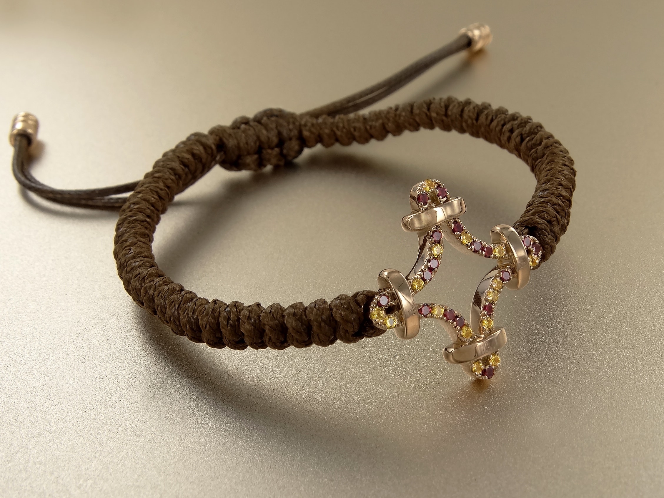 The ends of the cord are accented with two charms. Extremely durable, the bracelet can be worn in all situations — it withstands showering, swimming, and even the sauna.