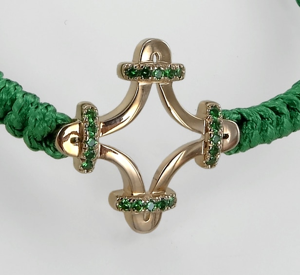 Crafted in 5N gold, this special edition is set with tsavorites.