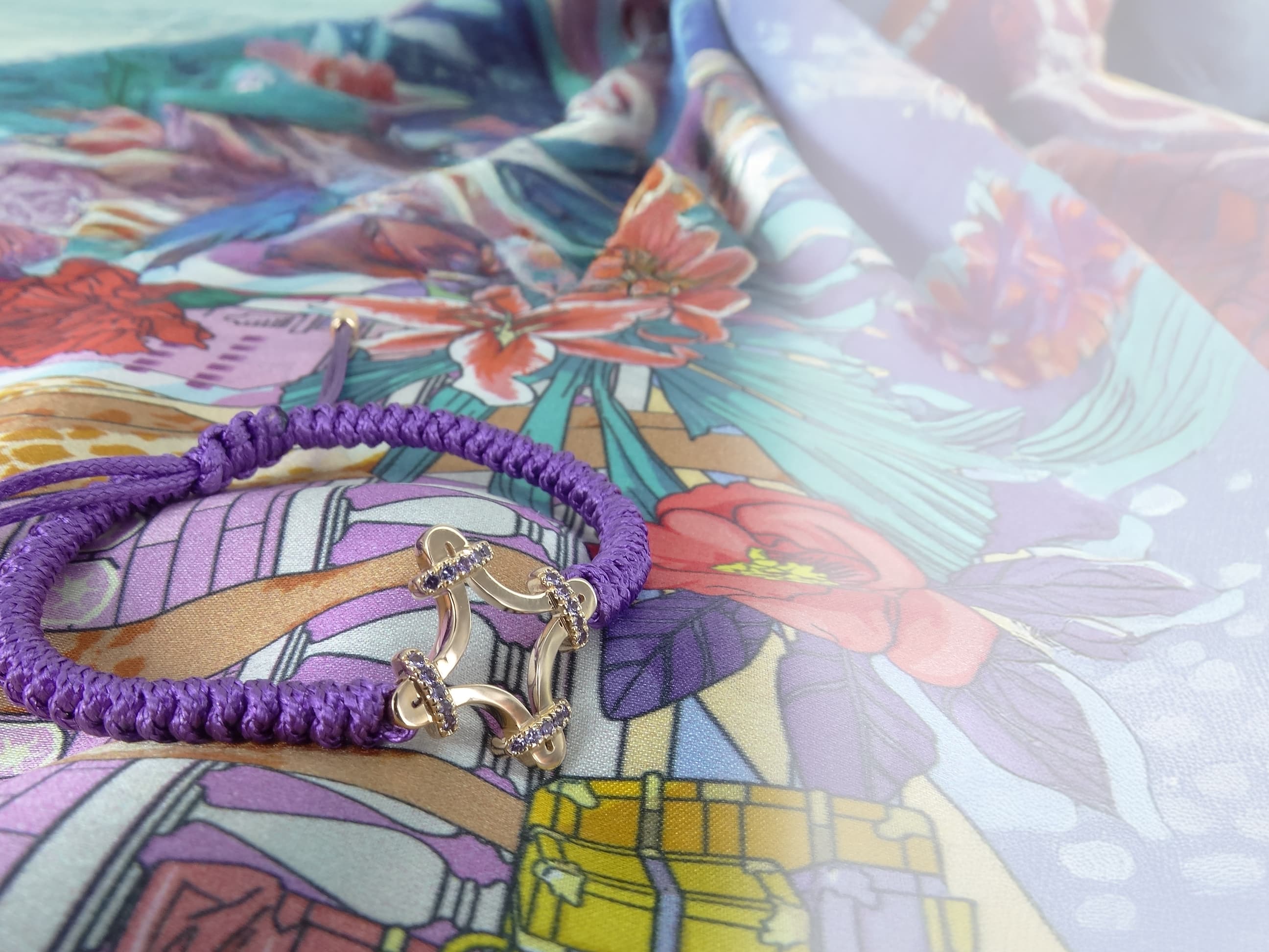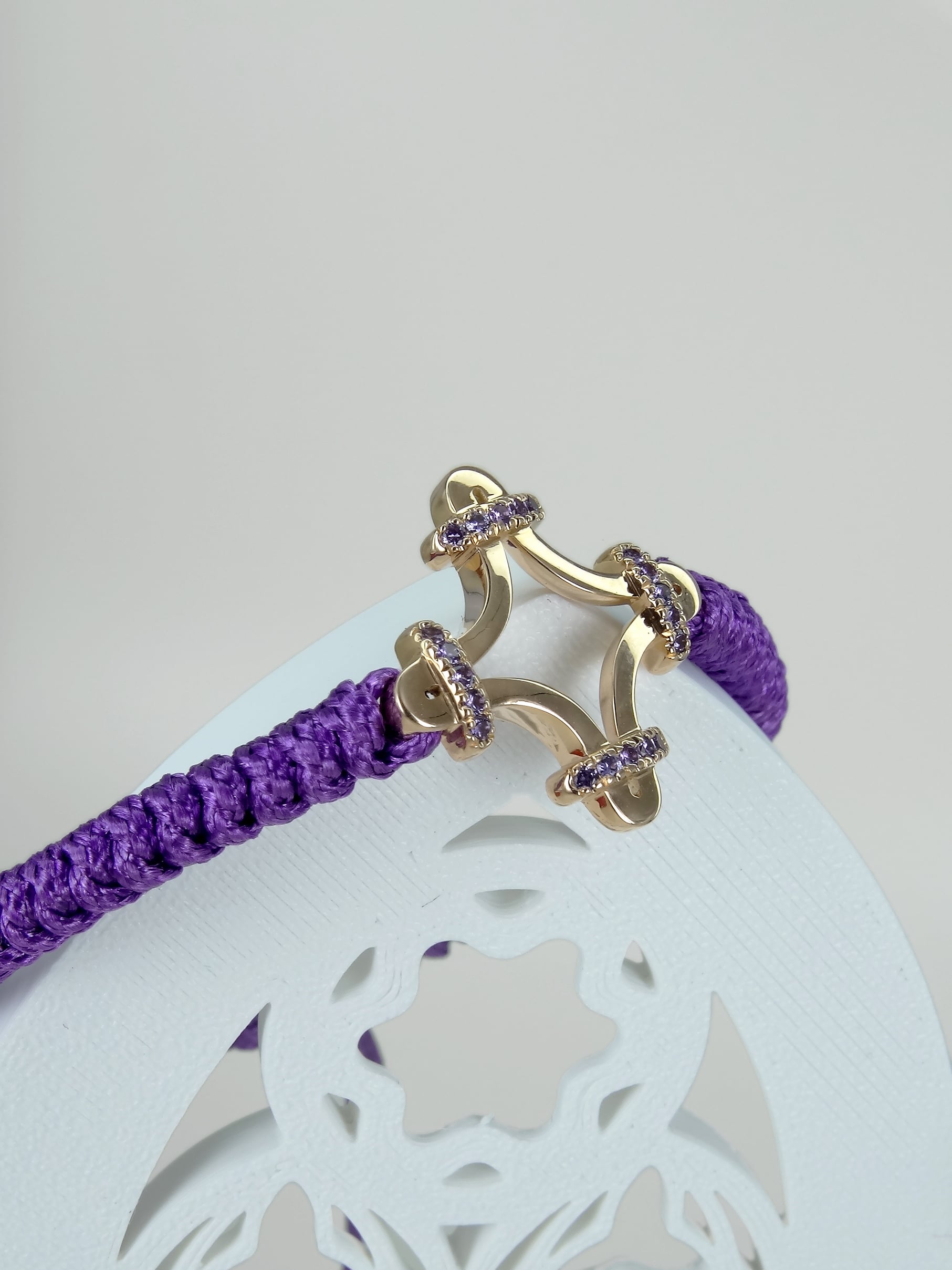 Les extrémités du cordon sont rehaussées de deux pampilles. Extrêmement résistant, le bracelet peut être porté en toutes situations, il supporte la douche, la baignade et même le sauna.