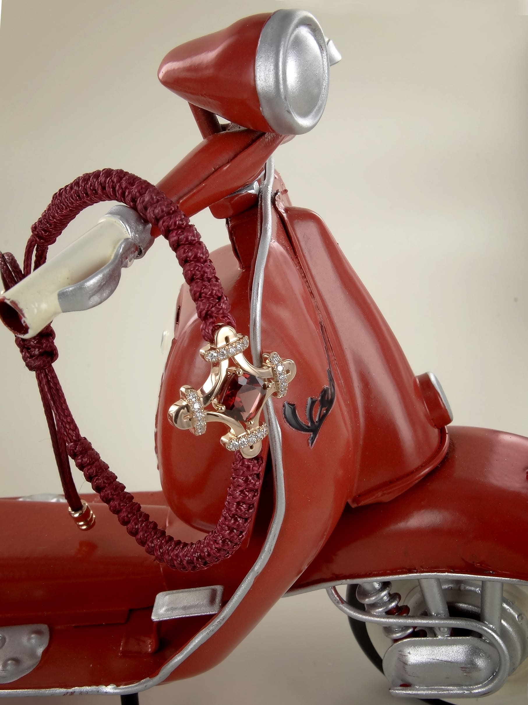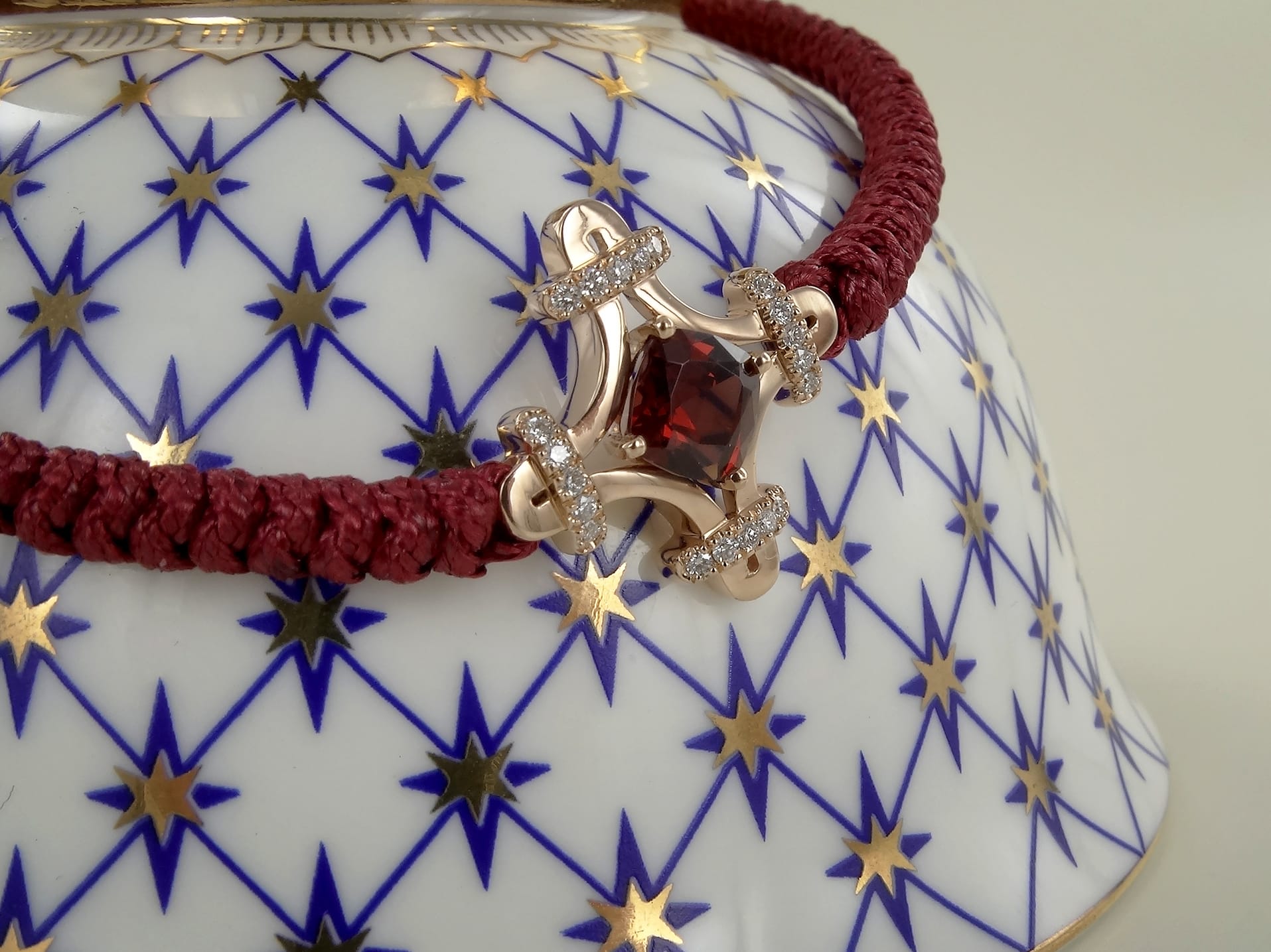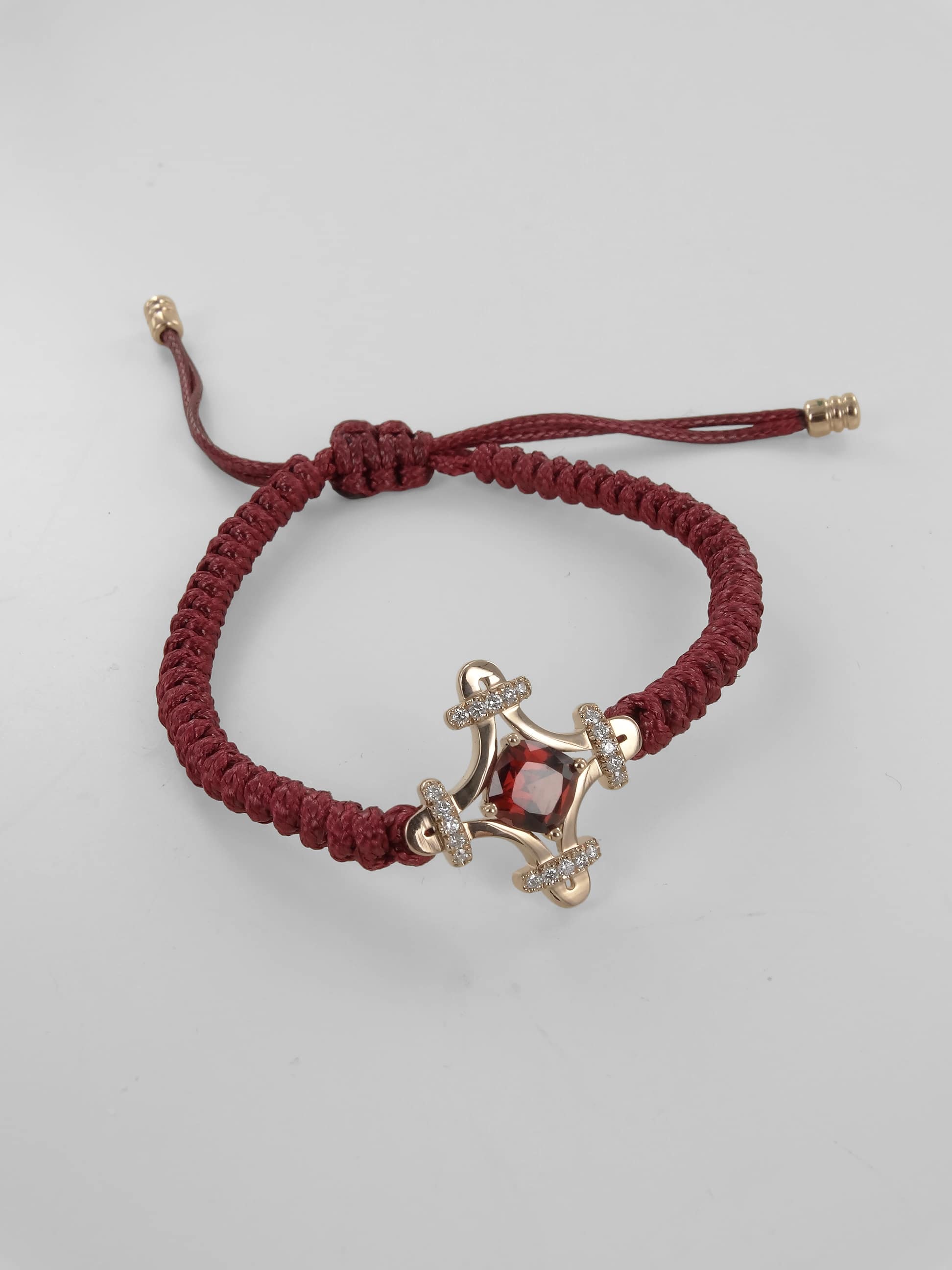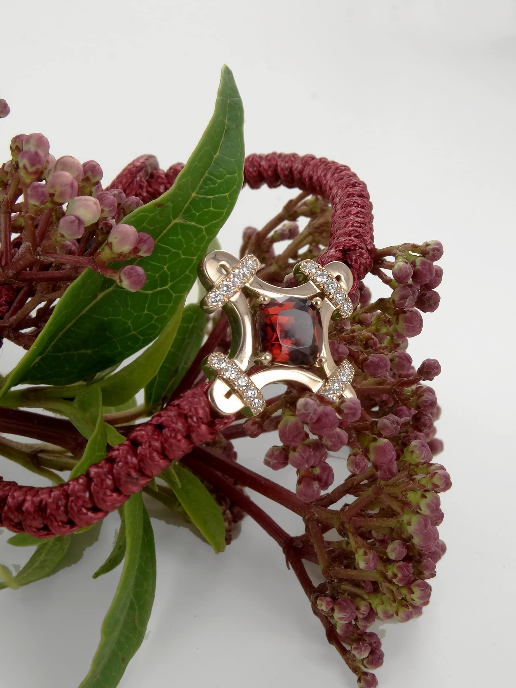 Réalisée en or rose, cette édition spéciale est sertie de 20 diamants et d’un grenat rhodolite, taille coussin de 6.3 mm.
