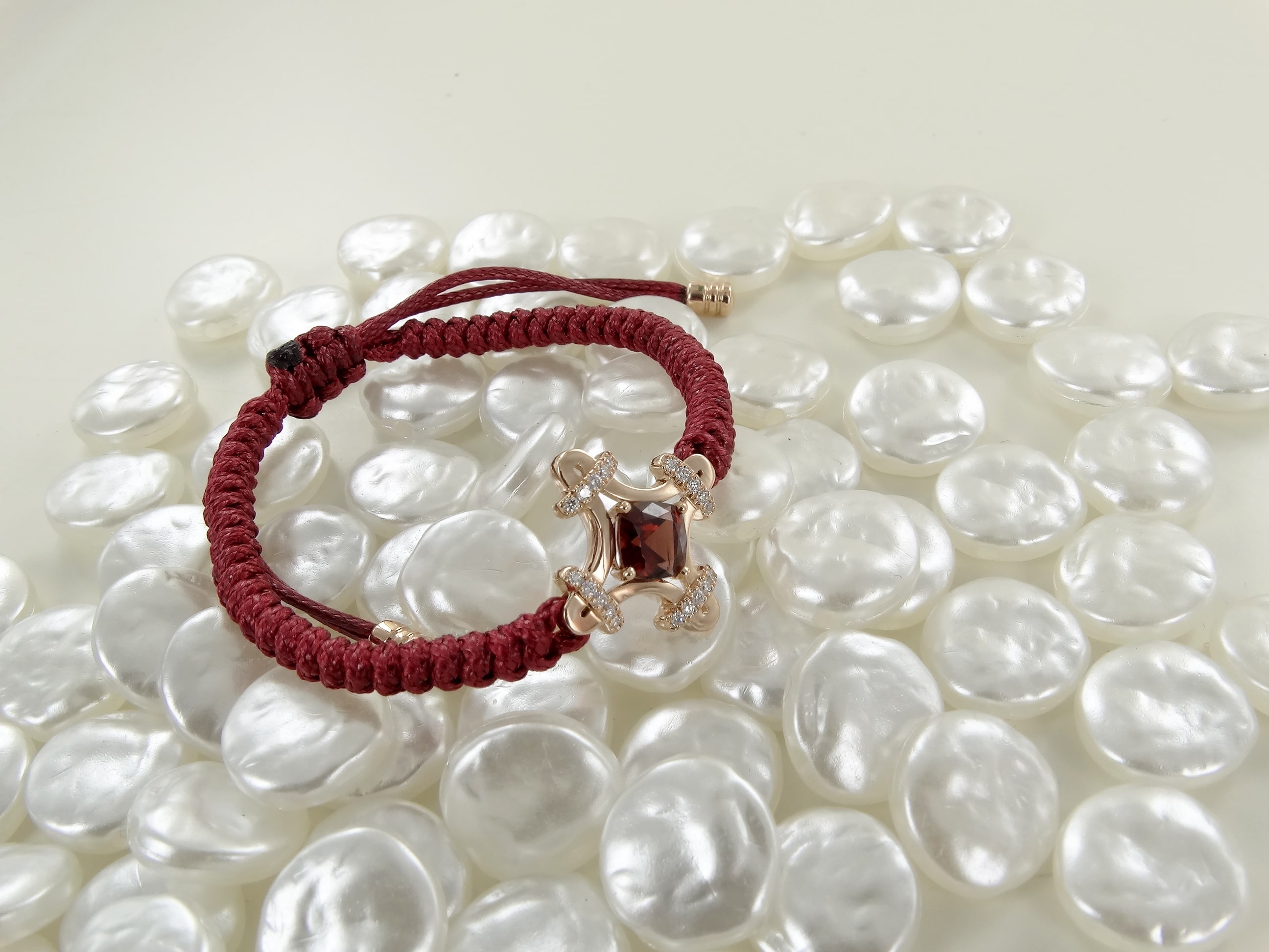 Les extrémités sont rehaussées de deux pampilles. D’une grande résistance, le bracelet peut être porté en toutes circonstances : il supporte la douche, la baignade et même le sauna.