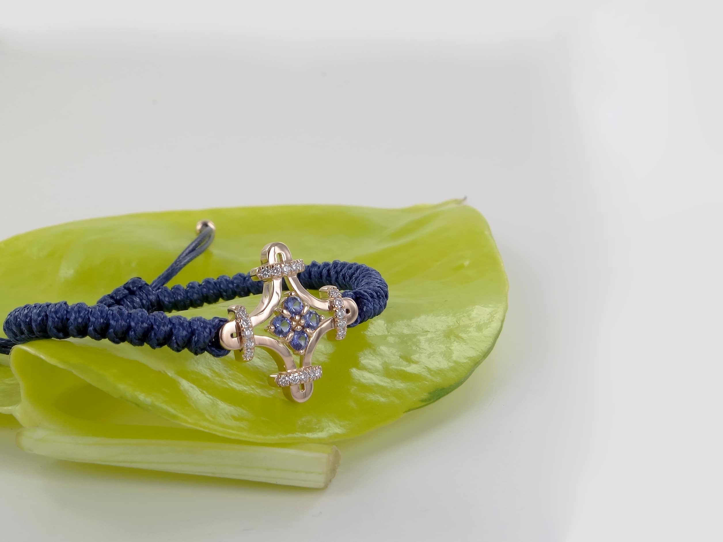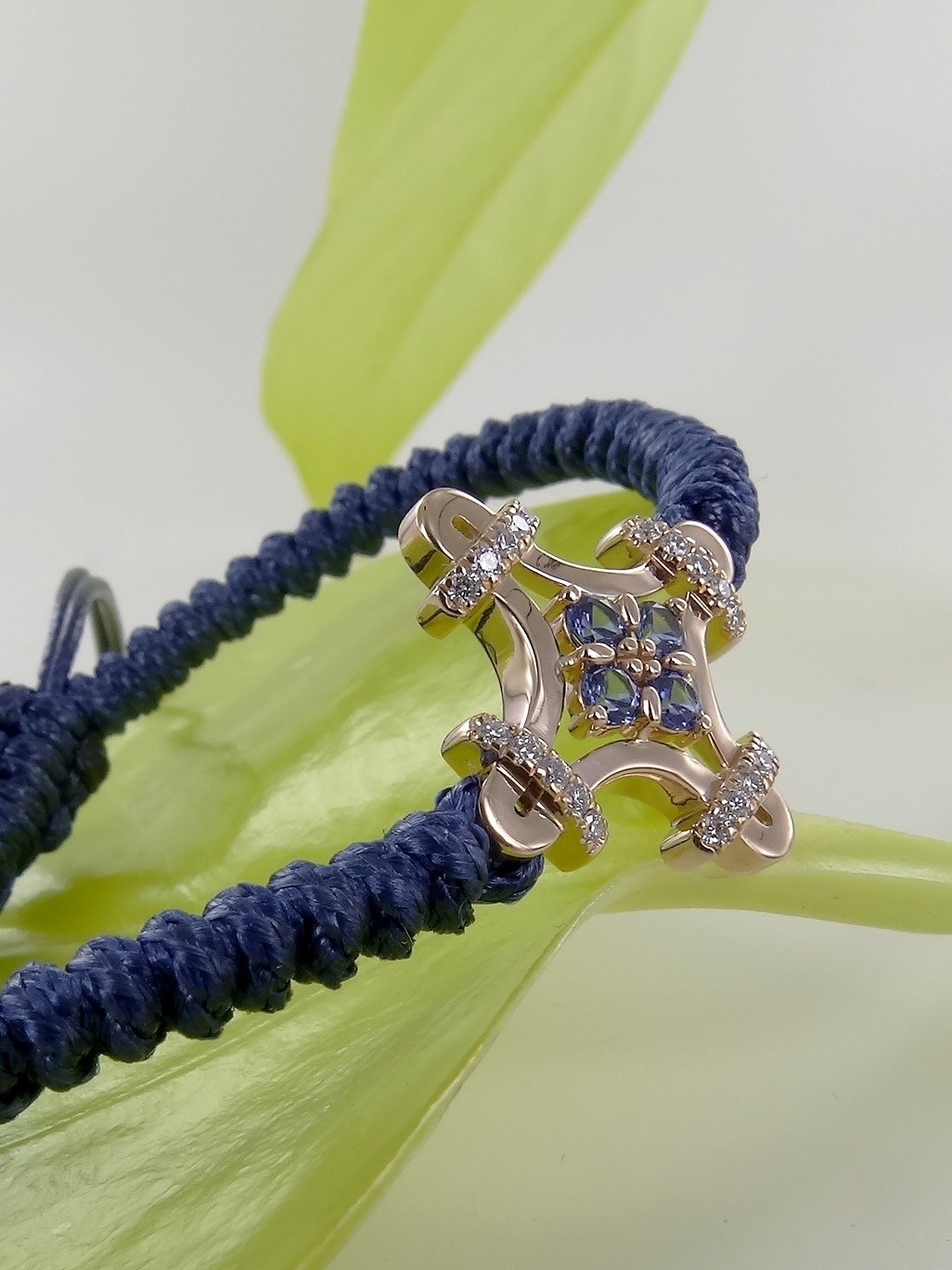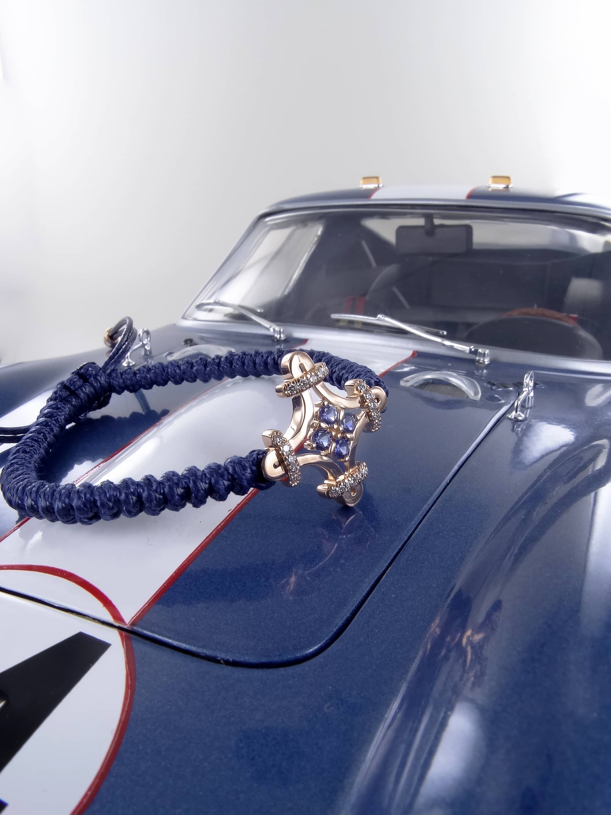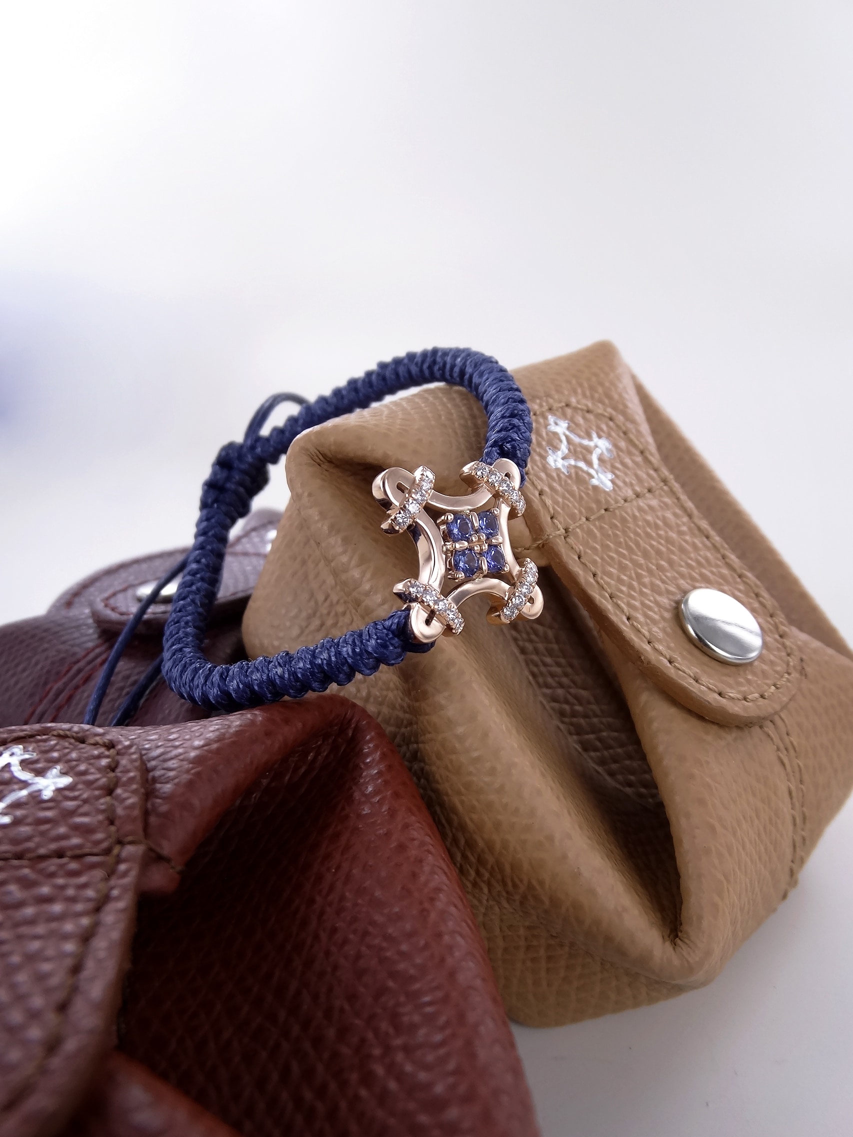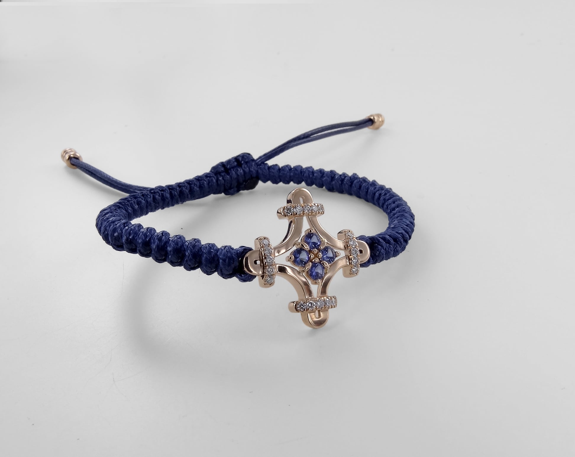 Les extrémités du cordon sont rehaussées de deux pampilles en or rose. Extrêmement résistant, le bracelet peut être porté en toutes circonstances : il supporte la douche, la baignade et même le sauna.